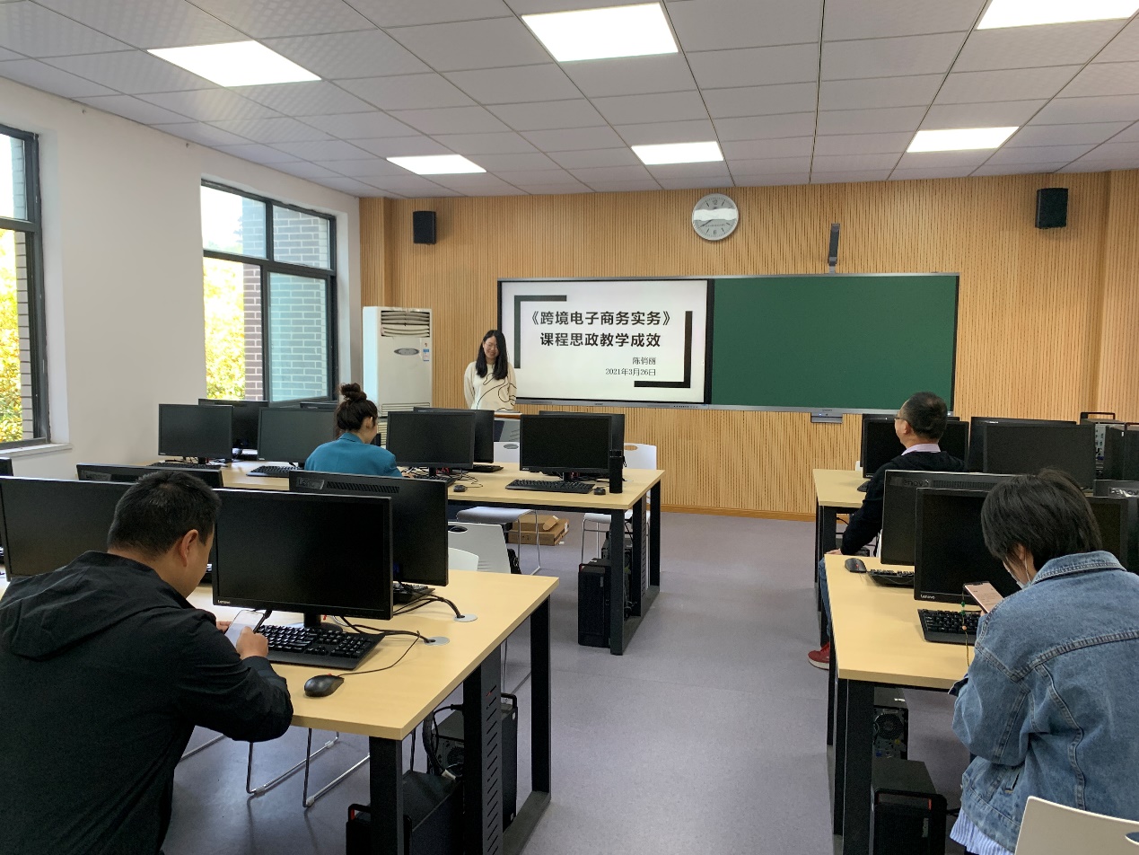 活动中,陈俏丽老师展示《跨境电子商务实务》的课程思政教学成效,着重阐述思政元素与课堂教学的结合,发挥课程知识点的载体作用,将课程思政教学素材与相关知识点结合,潜移默化之中培养员工求真求实求新、守德守法守规的品质。陈晓红老师分享《电子商务数据分析与应用》课程思政的教学设计思路与德育成效,依据电商领域数据分析员的日常实际工作流水,重构教学知识板块,着墨专业技能体系,将思政元素有机融合到课堂内外,培养员工目标岗位专业技能的同时,提升职业素养。随后,与会教师们对两位老师的说课进行了现场点评,对如何提高课程思政教学水平、如何提高教师育人水平等问题提出了宝贵的建议和希望。