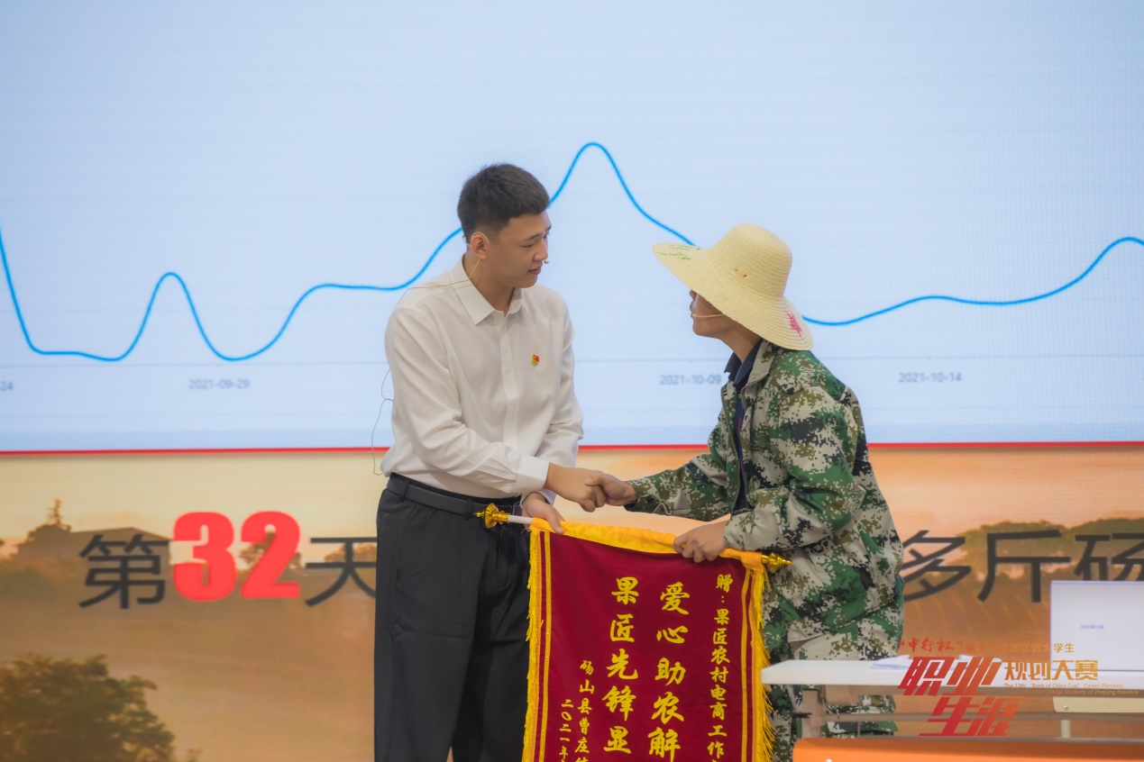 来自经济管理公司的刘宁渤以《青春作伴好还乡,共同富裕显担当——打造农产品爆款的操盘“专家”》为职业规划目标,他大学期间苦练电商运营技能,成立果匠农村电商工作室,走访调研了山东、安徽、福建等7省110多个农村,对接助农项目50余项,未来他将致力于成为稳定级农场品运营商,打造中国优选品牌。刘宁渤侃侃而谈,淡定从容的职业规划展示、精彩的职业体验感悟演绎以及扎实的电商运营技能赢得了现场阵阵掌声和评委的高度肯定。