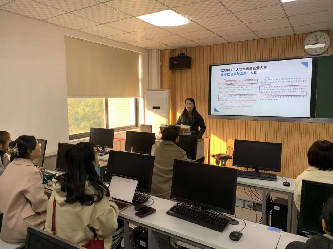 交流会由2021年创新创业竞赛获奖指导老师主持。主讲人根据自身竞赛指导经验,重点介绍了赛道布局、参赛条件、计划书撰写以及优秀竞赛文本分享等,为拟参加2022年创新创业竞赛项目如何更好地撰写项目计划书进行了梳理。