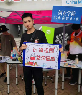 “在新中国成立七十周年之际,祝愿我们的祖国繁荣昌盛。” “点赞中国!”“比心创业!”这一句句骄傲的祝福,来自怀揣梦想的萌新们。自那一刻,他们被赋予了新的时代使命,更加坚定了爱国的本能,唤起了报国的勇气。这一天,青年学子们将祝福播撒在了校园的各个角落。