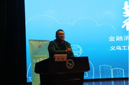 董晓晨致欢迎词,代表公司对主办方给予的支持表示感谢。他对义乌发展和公司创业情况作了介绍,对公司开展防诈骗、校园贷工作情况作了回顾,希望同学们专心听讲,切实提高金融安全意识,维护好自身权益。