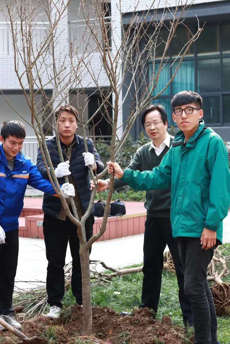 一番劳作之后,25株樱花树迎风挺立,错落有致、疏密有间,意寓全校教师、两岸学子勠力同心,为美丽校园的建设添薪加柴。