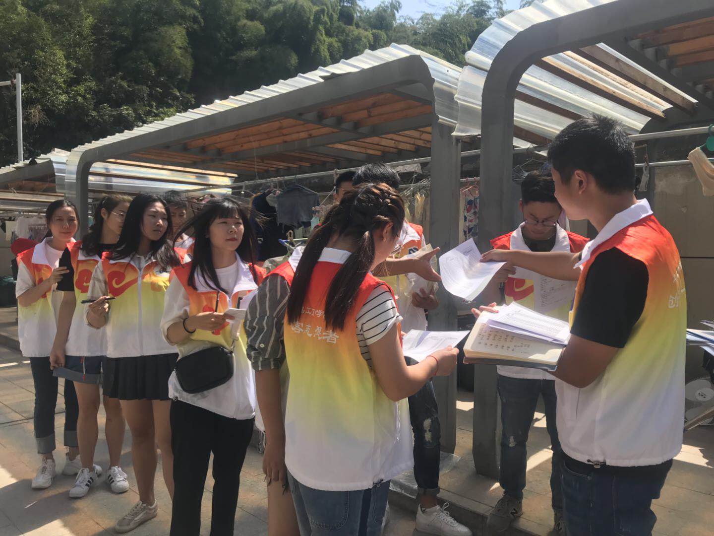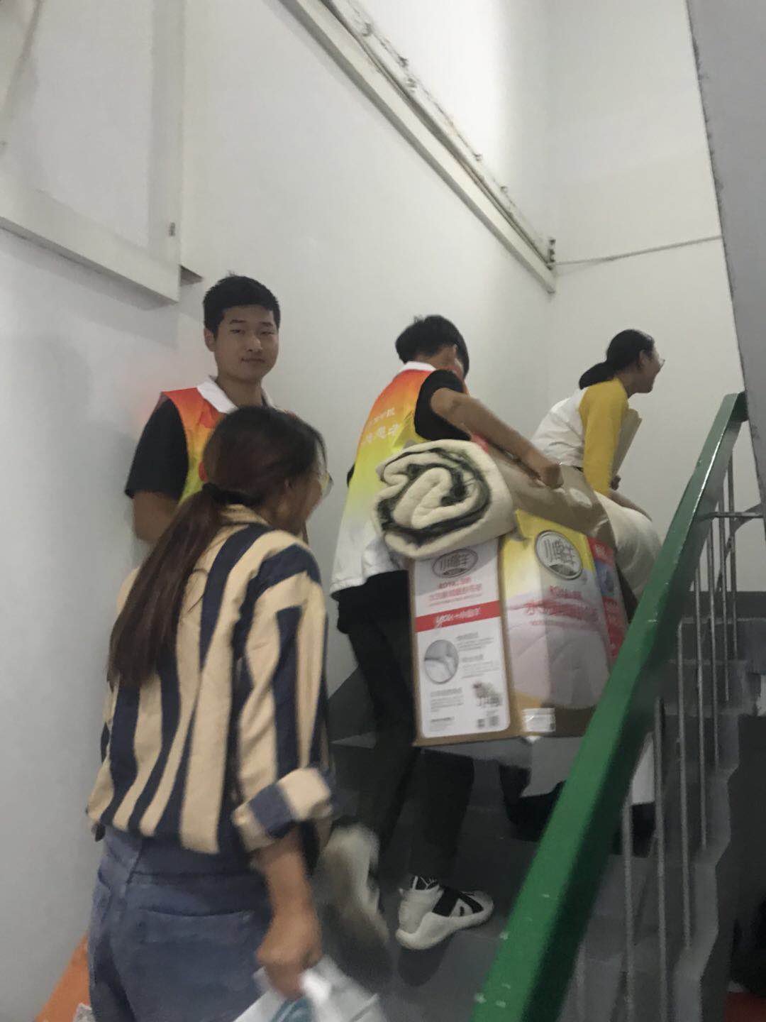12:00分,在班主任及志愿者的引导下,员工开始搬入新宿舍,志愿者登记入住信息。