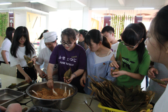 欢声笑语中,全体同志移步食堂开展自给自足包粽子和饺子活动,活动增进了党员员工之间的感情,同时拉近了教师和员工之间的距离。