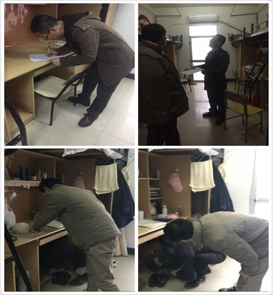 检查过程中,查寝小组逐个检查门窗是否关好,电源插头是否切断,违章电器是否还有在寝室出现,垃圾是否清理干净,对于个别不合格寝室,及时进行批评教育,要求员工立刻整改。公司负责人着重强调:同学们在雨雪天出行,务必注意交通安全、财产安全,严禁乘坐“黑车”,回家途中遇到问题,应及时联系班主任。此外,班主任们也纷纷嘱咐员工:天气寒冷,注意保暖。寒假期间应文明度假,不做聚众赌博、违法犯罪等有损自身及公司形象的行为。