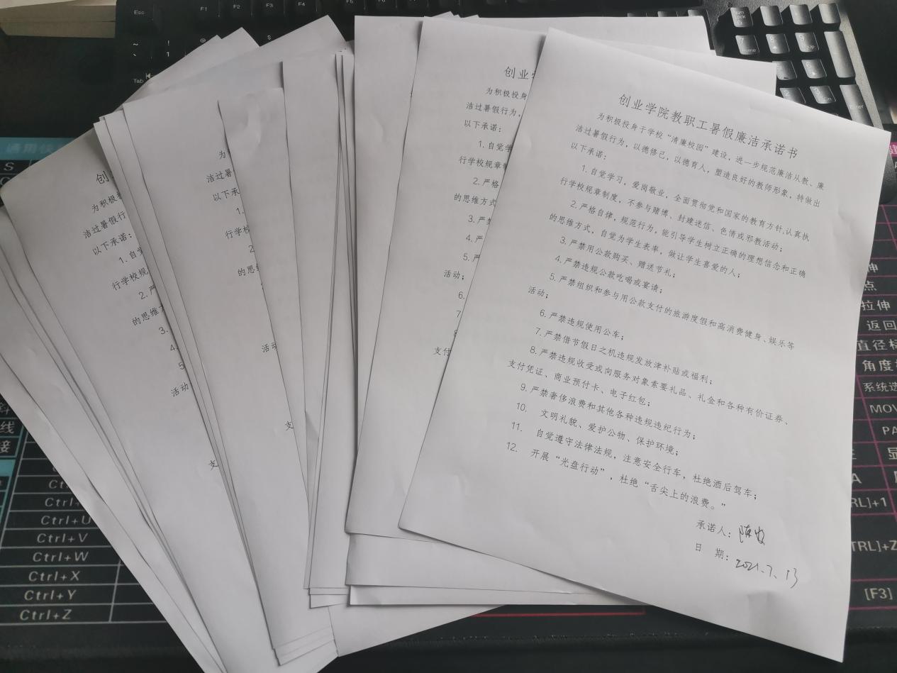 活动的最后,公司全体教职工签下《taptap点点体育教职工暑假廉洁承诺书》。这不仅仅意味着全体教职工立足本职岗位,做好员工表率的决心,更加是taptap点点体育工作铁军对于之后工作作风的庄严承诺。