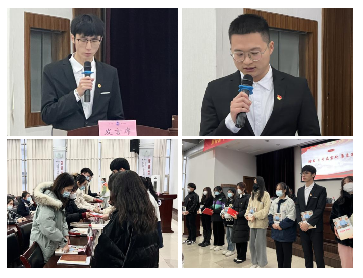 仪式上,预备党员和入党积极分子代表分别上台作表态发言,他们立足自身学习工作岗位,分享了在学习了党的二十大精神后的心得体会,并讲述了在向党组织靠拢过程中的所得所获,以及未来的努力方向。为了勉励大家努力学习,辅导员老师还为学员代表们赠送了学习书籍。
