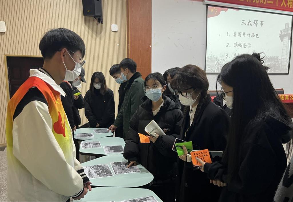 同时,现场还展出了许多南京大屠杀的历史图片,志愿者为同学们讲述每幅图片蕴藏的历史。一幅幅历史图片,让大家深刻感受到“落后就要挨打”,当代青年要肩负起时代赋予我们的责任和使命,努力奋斗。
