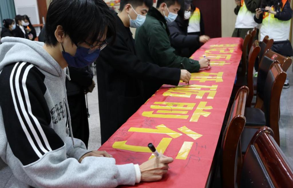 随后,同学们纷纷在“铭记历史,砥砺前行”的横幅上庄严地签下自己的名字。横幅上的一个个名字,承载着每位同学对历史的守护,对生命的尊重,对和平的期盼,更是对祖国的承诺。