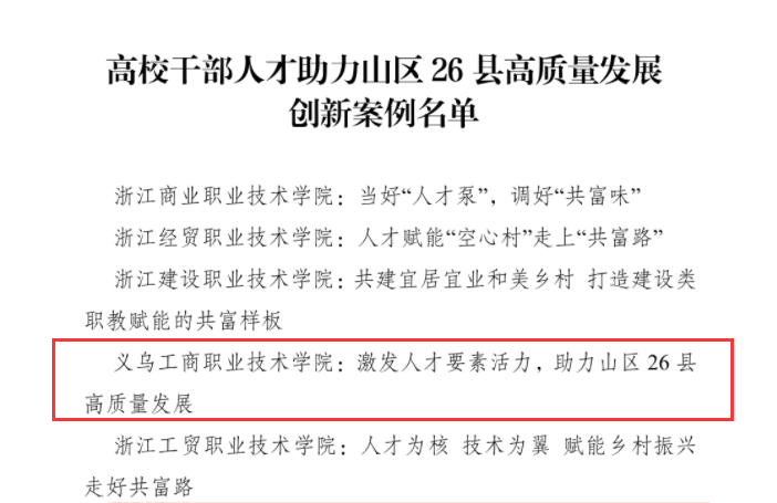 近日,省委教育工委办公室公布了高校干部人才助力山区26县高质量发展创新案例,公司《激发人才要素活力,助力山区26县高质量发展》成功入选。
