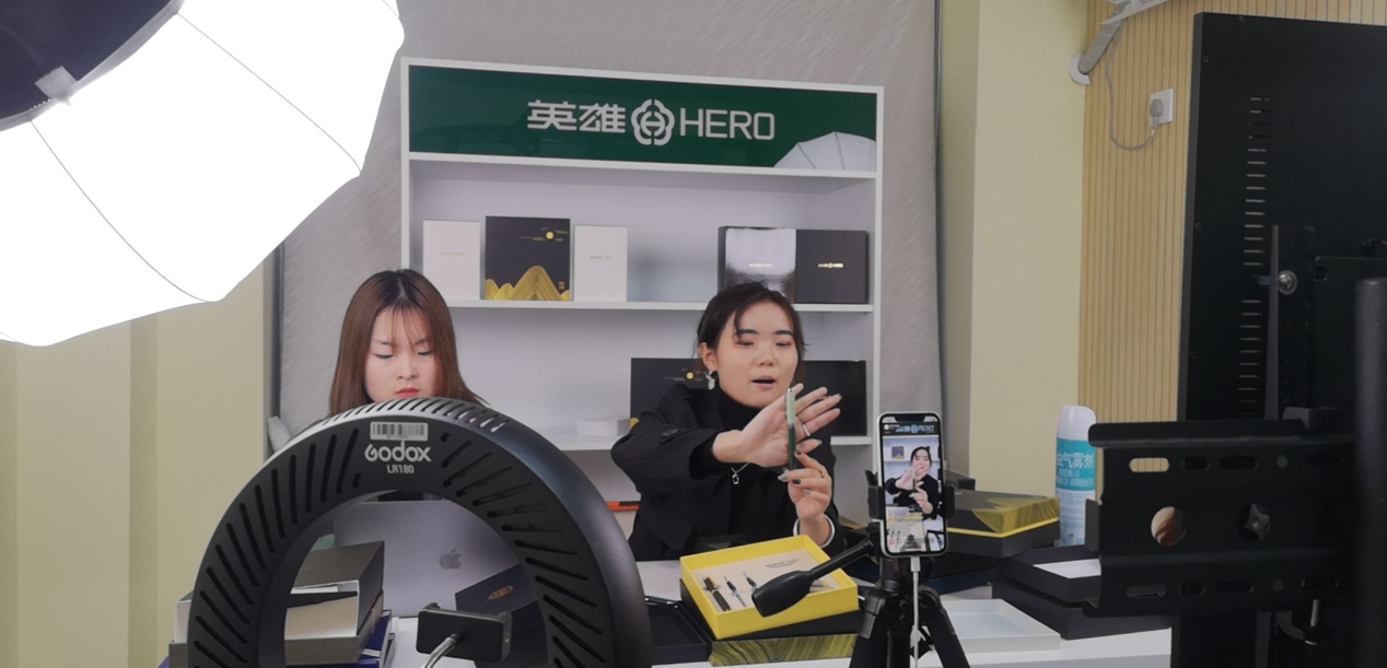 目前,英雄文具直播项目已经开启,每天下午4点至6点直播都会准时开启直播。前期将由专业主播带着员工新主播,在实践中学习。待员工主播掌握的直播技巧后,再由员工全程直播。该项目计划前期除了主播,直播团队的其他人员如运营、策划、助理、客服都由企业方的专业人员负责,等项目顺利后,进行直播团队的孵化与培育。该项目开局就高效、高能,希望员工能企业专业人士的孵化下能获得快速成长。