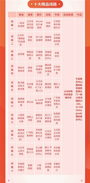 初赛为期三个月,具体时间为7月10日至10月10日。这一阶段的比赛内容以寻找“义乌网红打卡地+义乌商贸城寻找全网新奇特商品”为主线,分七大板块、十条精品线,涵盖美食、美景、娱乐、住宿、牛商、自选商铺(义乌市场内)和推荐牛品。