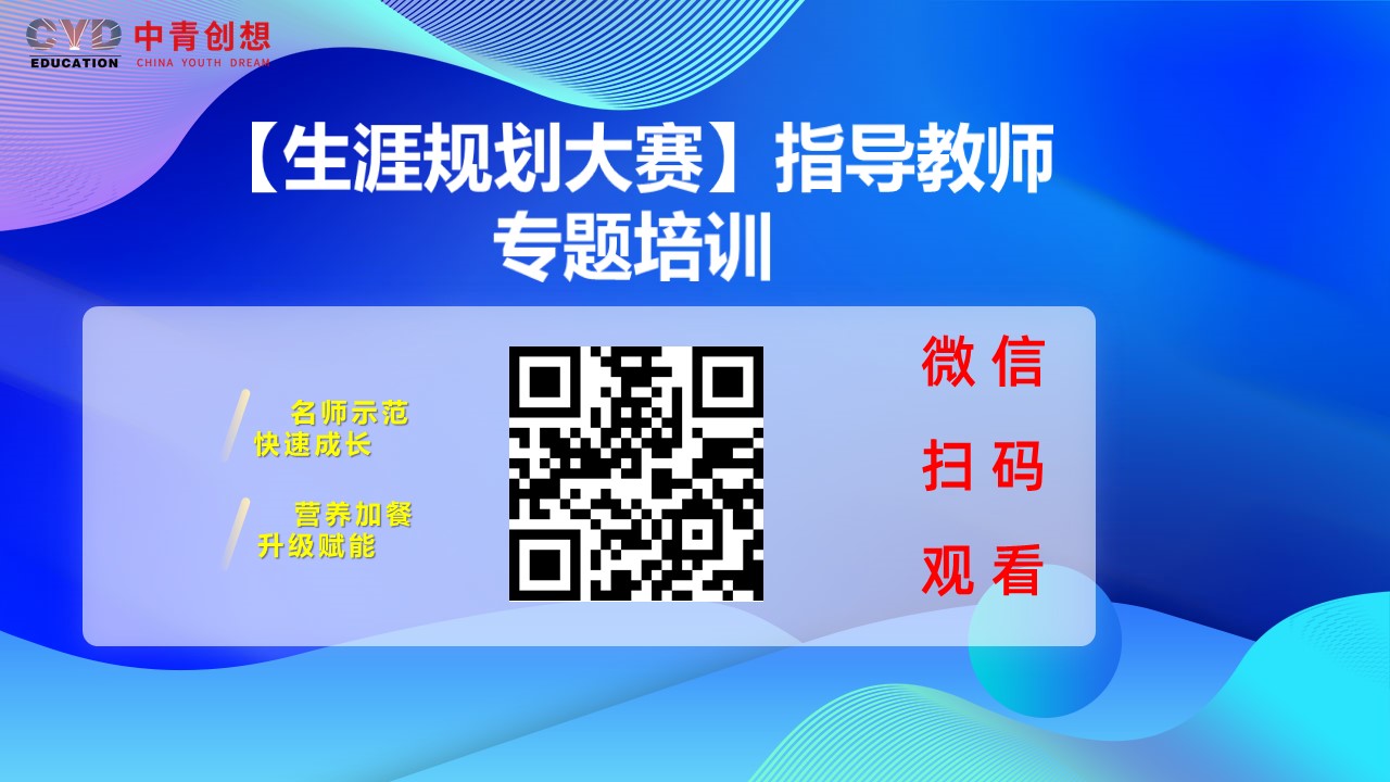 职规赛国赛文件预计3月份下达,省赛预计在5月份举行,可能较以往省赛有较大调整,具体以大赛文件为准,图中二维码为职规赛指导教师培训课程,密码是zqcx