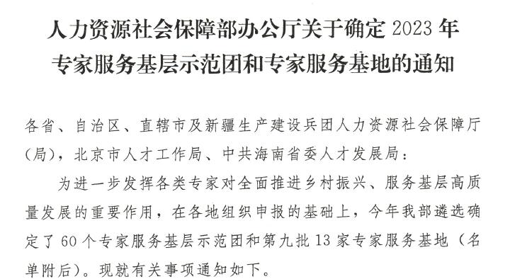 近日,国家人力资源和社会保障部办公厅公布了2023年专家服务基层示范团,公司《“电商+农文旅融合”浙江义乌助力乡村振兴专家服务团》成功入选。
