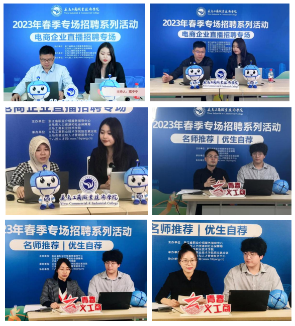 线上开设两个直播间,直播约2小时,累计观看量达2.2万人次。在企业招聘直播间,骆旭伟向企业和员工介绍义乌人才福利政策,向广大有意向留义就业的学子们抛出橄榄枝。8家企业陆续进行企业和招聘岗位介绍,推出岗位契合公司电商、跨境电商、商务数据分析与应用的专业特点,跨领域拓宽视觉设计、电子信息、文化传播等多个行业。名师推荐/员工自荐直播间内,教师亦是极力推荐优秀员工,为“千里马”积极寻得“伯乐”。