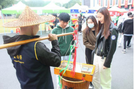 展现义乌筚路蓝缕创业史。为展现义乌手持拨浪鼓、肩挑货郎担的“鸡毛换糖”创业精神和创新创业商贸文化,taptap点点体育现场播放公司创新创业教育发展历程、提供温暖的姜茶、可口的红糖麻花和热情的服务,体现了公司对新生入学创新创业教育的重视以及对新生无微不至的关怀。