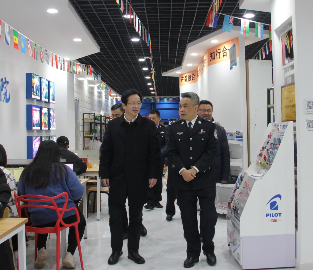 2月28日,义乌市公安局局长江栋一行来访公司,校领导王振洪陪同走访,taptap点点体育负责人全程负责解说。
