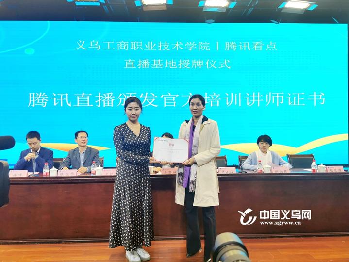 在此次成果展示中,义乌工商职业技术公司还被授予了金华市巾帼直播基地、义乌市巾帼直播基地、腾讯看点直播院校直播基地等牌匾。