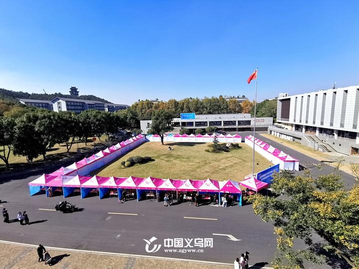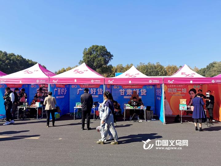 今天(11月11日)上午,金华市脱贫攻坚“云逛实体”店主主播培训成果汇演暨义乌工商职业技术公司腾讯直播院校基地授牌仪式举行。义乌工商职业技术公司创业园前,66个直播间正在对全国7个省份52个脱贫县的农产品现场直播销售。