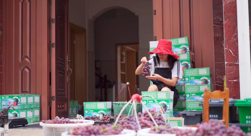 7月初放暑假时,严佳莉迫不及待地前往浦江去看望外婆。以往每年春节,她都在浦江的外婆家呆上一周。今年受疫情影响,她年初、春节都未能去给外婆拜年。舅舅、舅妈与表哥在金华工作,外婆与外公都已70多岁,在家守着葡萄园,今年葡萄收成特别好,外婆家就有1000多斤葡萄,但葡萄销售成为一个大难题。