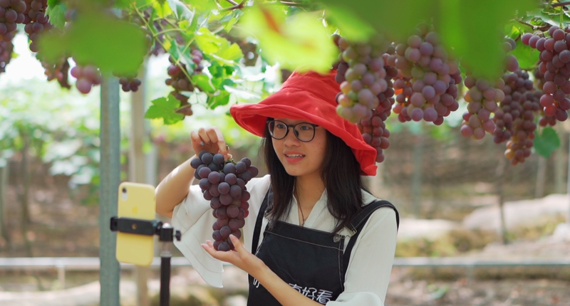 三人团队中,严佳莉主要负责视频拍摄,另外两人一人负责文案策划,一人负责视频剪辑。有了团队支持,严佳莉的视频获得了更多点赞,葡萄销量也“蹭蹭”往上涨。在陈老师的鼓励下,严佳莉开始尝试直播。