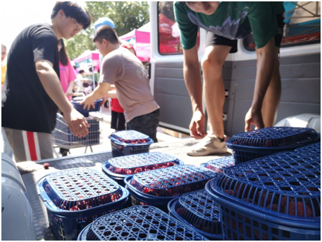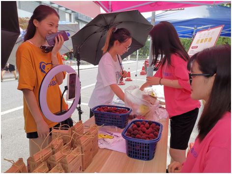 直播结束后,三名老师不顾劳累,驱车前往兰溪市重点帮扶的屠妈妈家,拉回400多斤杨梅鲜果,参加公司团委举办的“练摊吧后浪”活动。员工们通过“直播+摆摊+助农”的形式,将屠妈妈爱心杨梅销售一空。