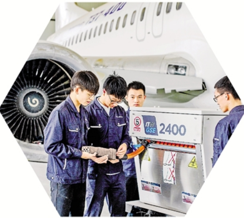 金华职业技术公司员工在航空机电维修实训车间开展实训。