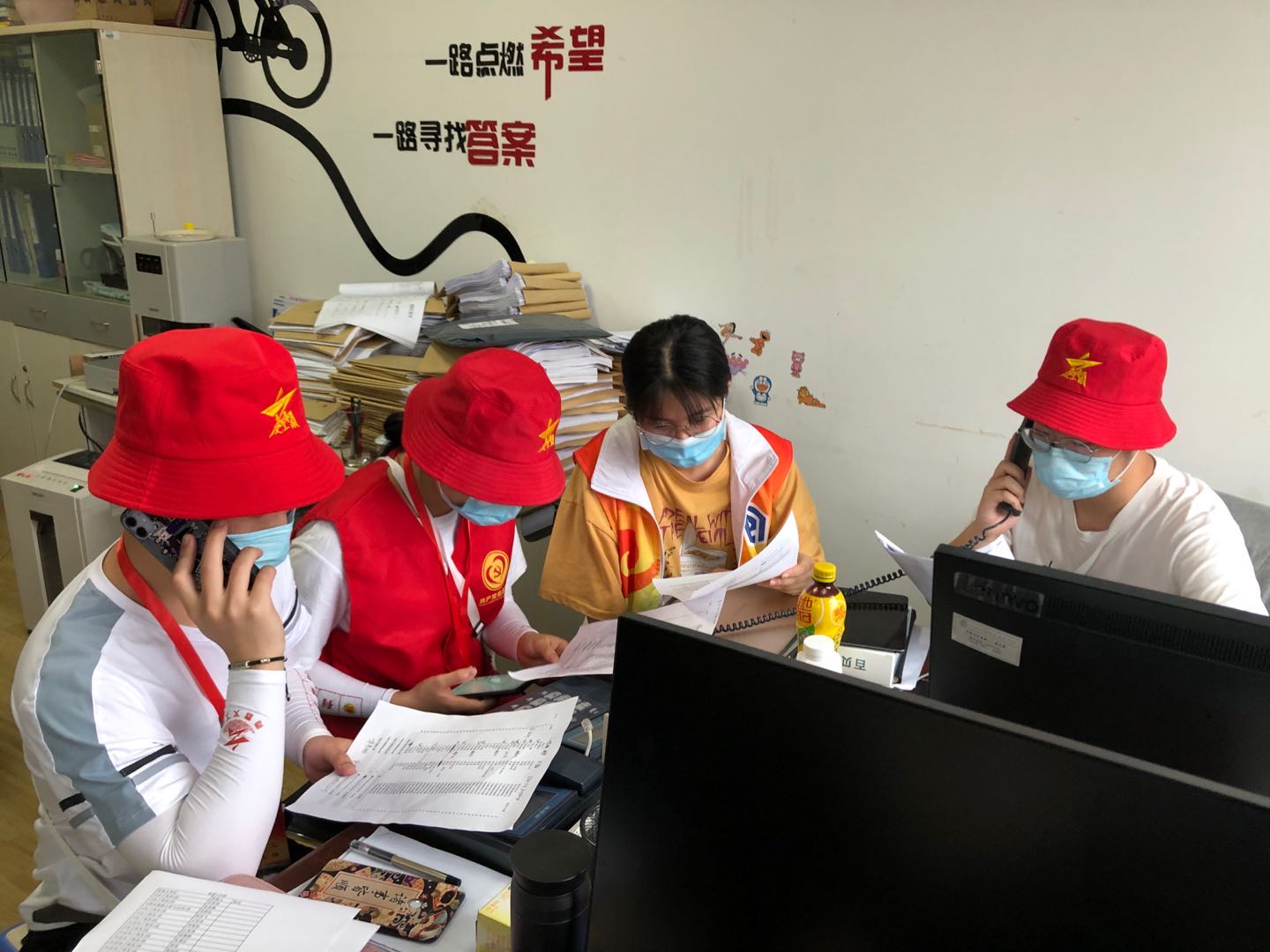 7:00,15名创客志愿者全体齐聚于雪峰楼。他们都是创业班的员工,平日里忙着电商创业的他们放下手头的订单,各司其职、各尽其责,迅速进入角色。志愿者们共分为3个小组:公寓服务组、校门服务组、数据排查组。