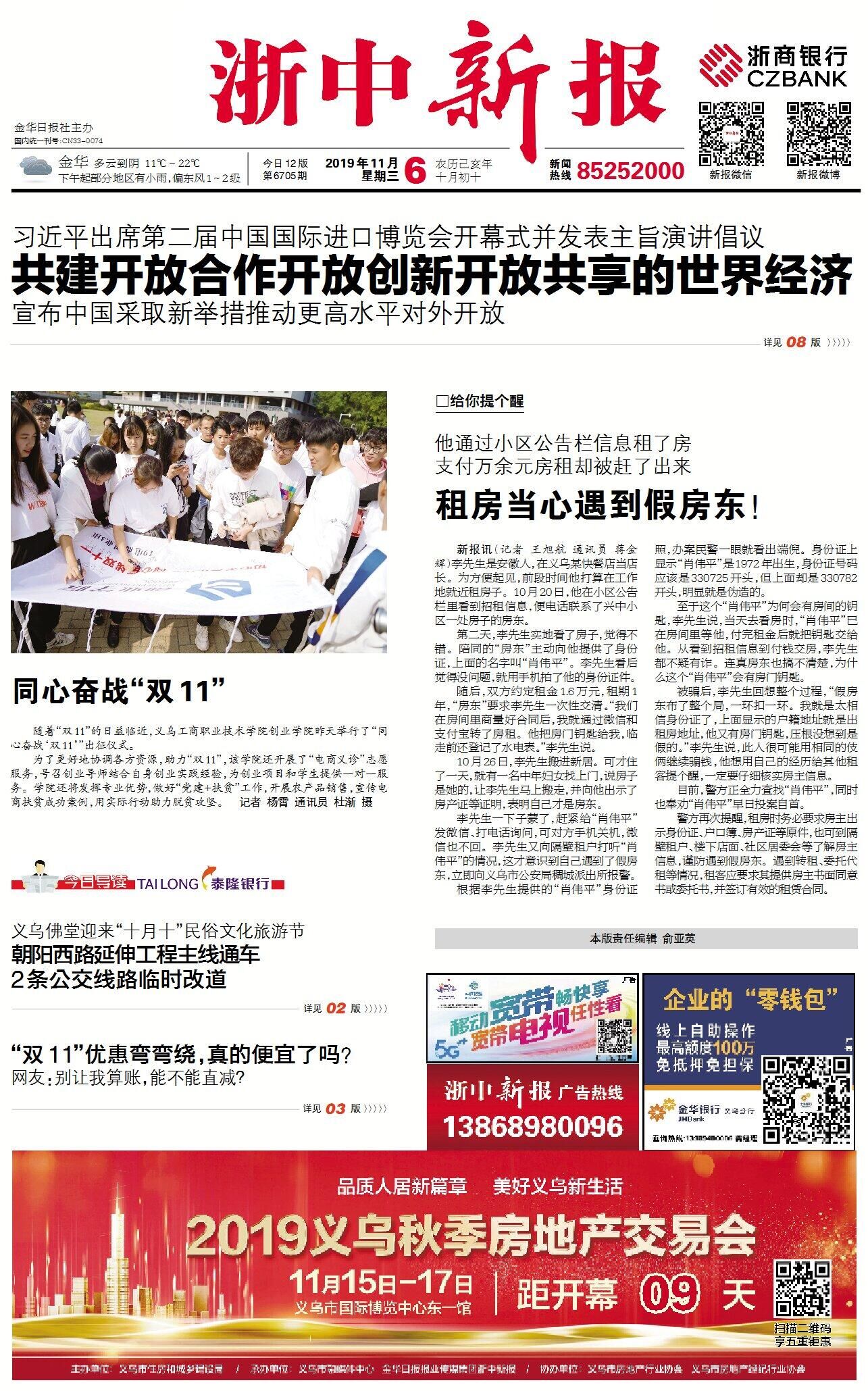 新闻链接:http://epaper.jhnews.com.cn/zzxb/zzxbpaper/pc/con/201911/06/content_161724.html