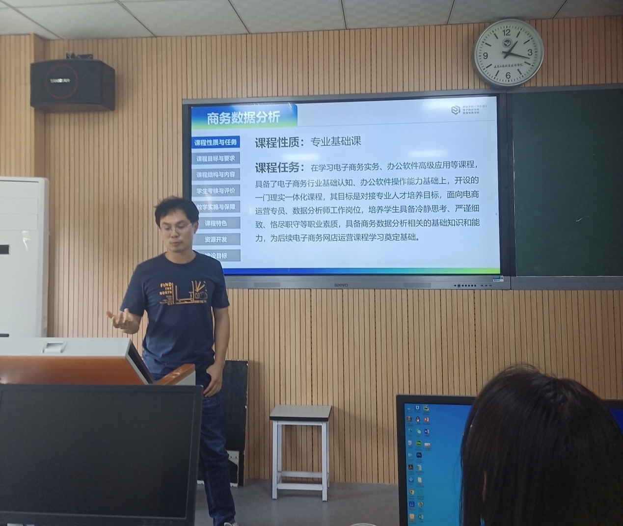 此次“说课程”教研活动既让说课程活动成为专业的常态性活动,不断促进教师通过汇报总结并推进课程建设,也通过专业内部交流,提高专业内部合作互动的良好氛围。