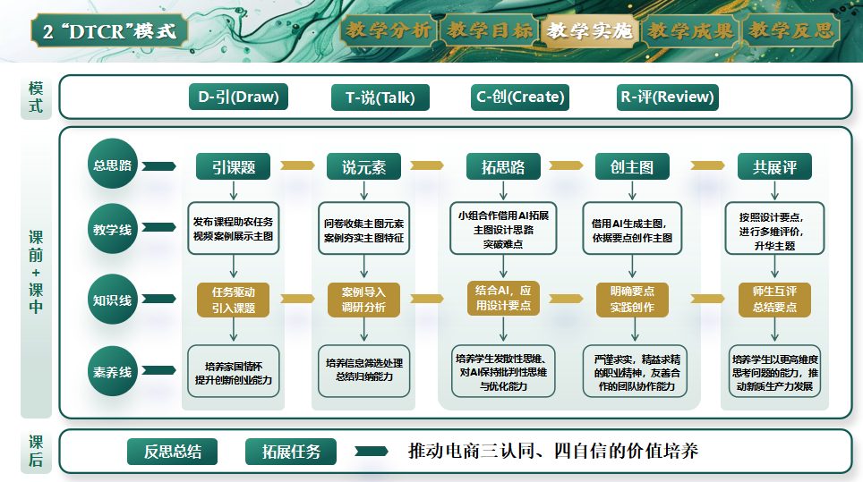 公开课后,叶露露老师围绕课程教材选用、教学目标设定、思政融入方法、教学重难点突破、AI 教学手段应用、教学过程设计及教学反思等内容进行了 10 分钟说课,系统阐述了课程 “启智、提质、增效” 的设计理念。教学督导点评指出,本节公开课 “技术赋能有新意、思政融入有深度、实践导向有力度”,通过 AI 工具与真实项目的结合,有效破解了视觉营销设计教学中的创意瓶颈,为电商专业课程改革提供了可复制的示范样本,充分体现了职业教育服务产业、助力乡村振兴的育人导向。