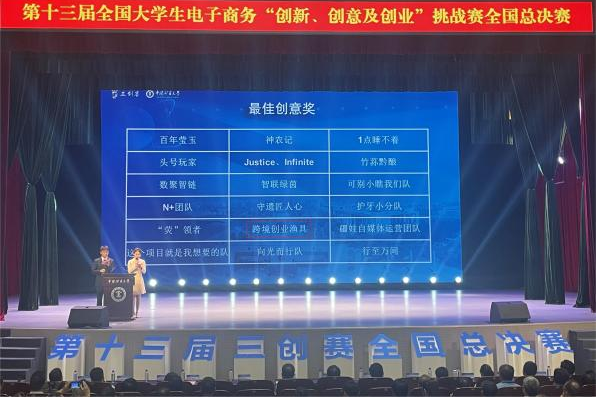 8月1日至2日,第十三届全国老员工电子商务“创新、创意及创业”挑战赛(以下简称“三创赛”)常规赛全国总决赛在中国矿业大学圆满举行。公司李春丽、金航飞老师指导的“跨境创业渔具”团队《渔来渔往》项目荣获特等奖,位列全国第三名。团队还荣获最佳创新奖、最佳创意奖、最佳创业奖,两位老师荣获最佳指导老师。