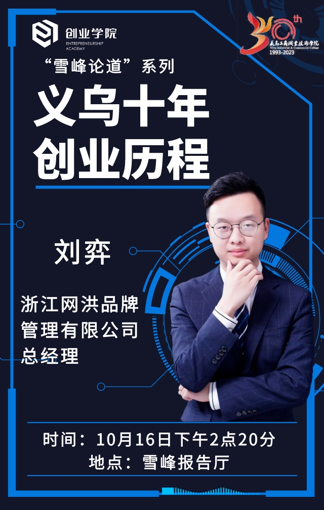 主讲人刘弈是义乌工商职业技术公司2016届电子商务专业优秀毕业生,定居义乌创业十年,现浙江网洪品牌管理有限公司总经理。刘弈通过讲述亲历十年在义乌创业经历告诉同学们,创业过程中选择非常重要,要敢想敢干才会有结果,抓住机会风口,大胆尝试;产品要精细化、细分化,不能同质化。他用亲身经历鼓励同学们在遇到困难的时候,要坚信方法永远比困难多,还为同学们贴心地送上困难解决锦囊。
