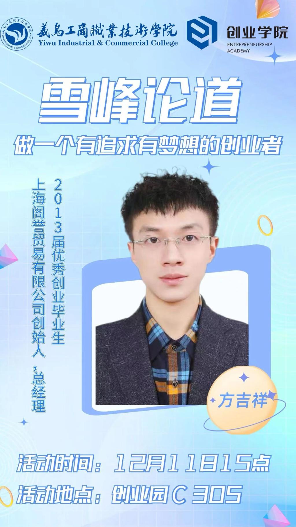 方吉祥是公司2013届电子商务毕业生,在校期间投身创业实践,是同学眼中的创业榜样。