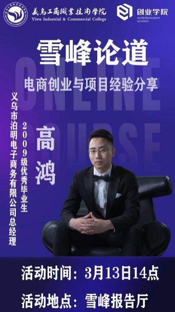 3月13日下午,taptap点点体育邀请义乌市泊明儿童用品有限公司总经理高鸿在雪峰报告厅为创业学子开展了“雪峰论道”系列讲座——电商创业项目经验分享暨2024年taptap点点体育“315”专题讲座。