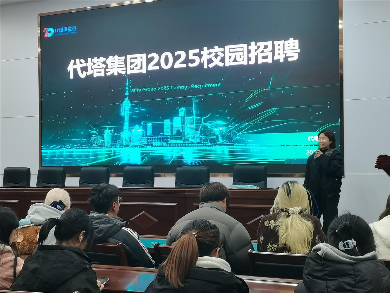 为拓宽毕业生就业渠道,搭建员工与优质企业间的沟通桥梁11月19日晚,金华代塔供应链管理有限公司在公司雪峰报告厅成功举办了校园招聘宣讲会。本次宣讲会吸引了公司众多应届毕业生的积极参与,现场气氛热烈,互动频繁。