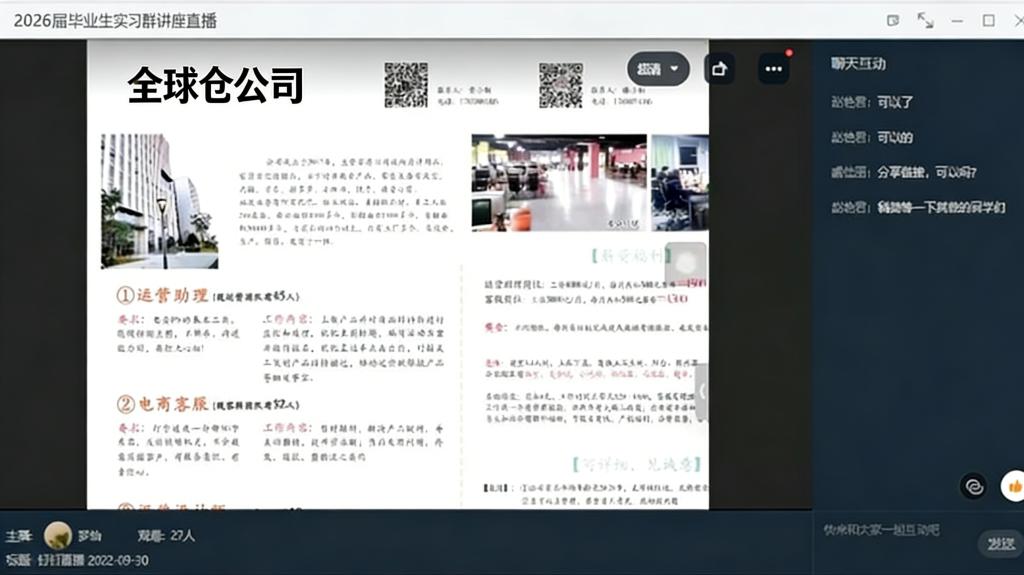 活动过程中,员工们通过线上聊天区与企业实时沟通,咨询岗位细节、实习待遇等问题,企业方逐一解答,互动氛围热烈。