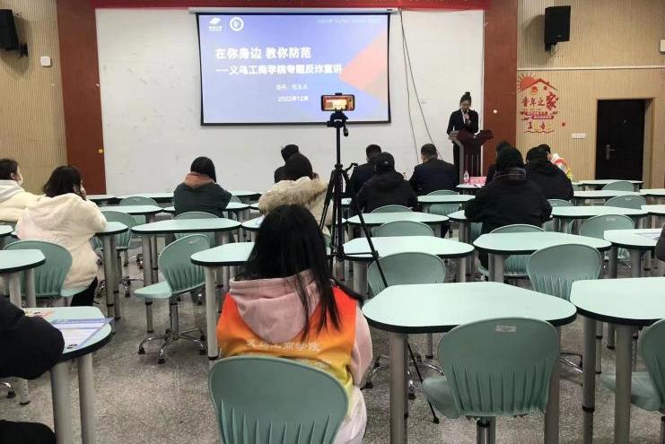 范玉贞就防范诈骗和远离毒品两个主题展开叙述。具备多年经济领域反诈骗投教经验的范老师以宣传短视频引出主题,对网络刷单、买卖游戏账号、校园贷等常见诈骗情形展开了剖析,细说了预防诈骗和发生被骗后的补救措施,拓宽了同学们的思维。“毒品也是隐藏在生活中的危害”范玉贞从毒品的类型,吸毒的事例和危害,以及如何防范毒品等维度娓娓道来,提醒同学们风险意识要长存,树立正确健康的生活观念,远离毒品。