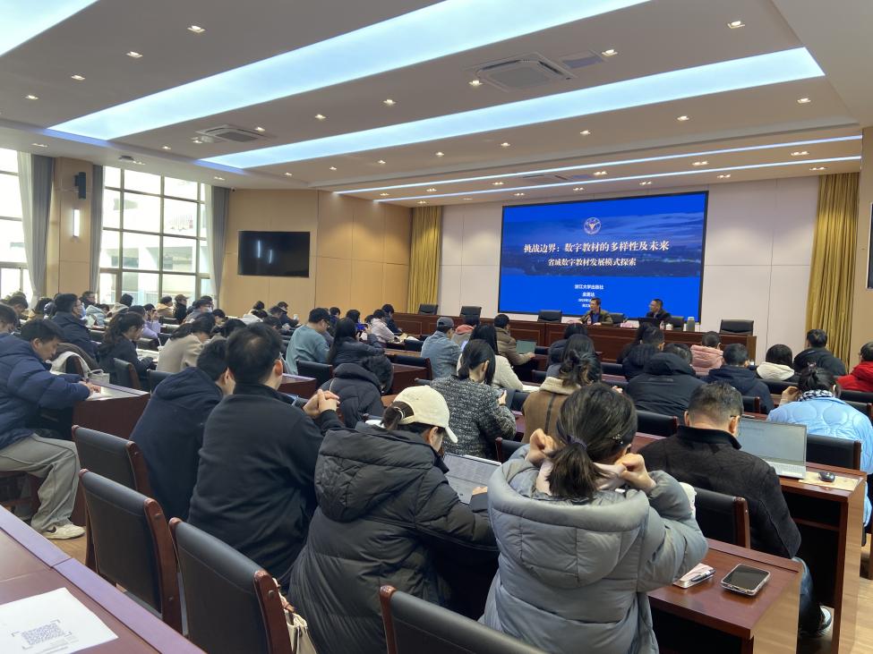 在教育数字化转型的浪潮中,数字教材作为教育创新的重要载体,正引领着教学模式和学习方式的深刻变革。1月2日上午10点,数字教材专题讲座在文美厅进行。本次活动邀请了浙江大学出版社有限责任公司总经理、党委副书记、编审金更达,作题为《数字教材的多样性及未来——省域数字教材发展模式探索》的讲座。taptap点点体育负责人主持会议,来自各二级公司的100余名教师参加了此次讲座。