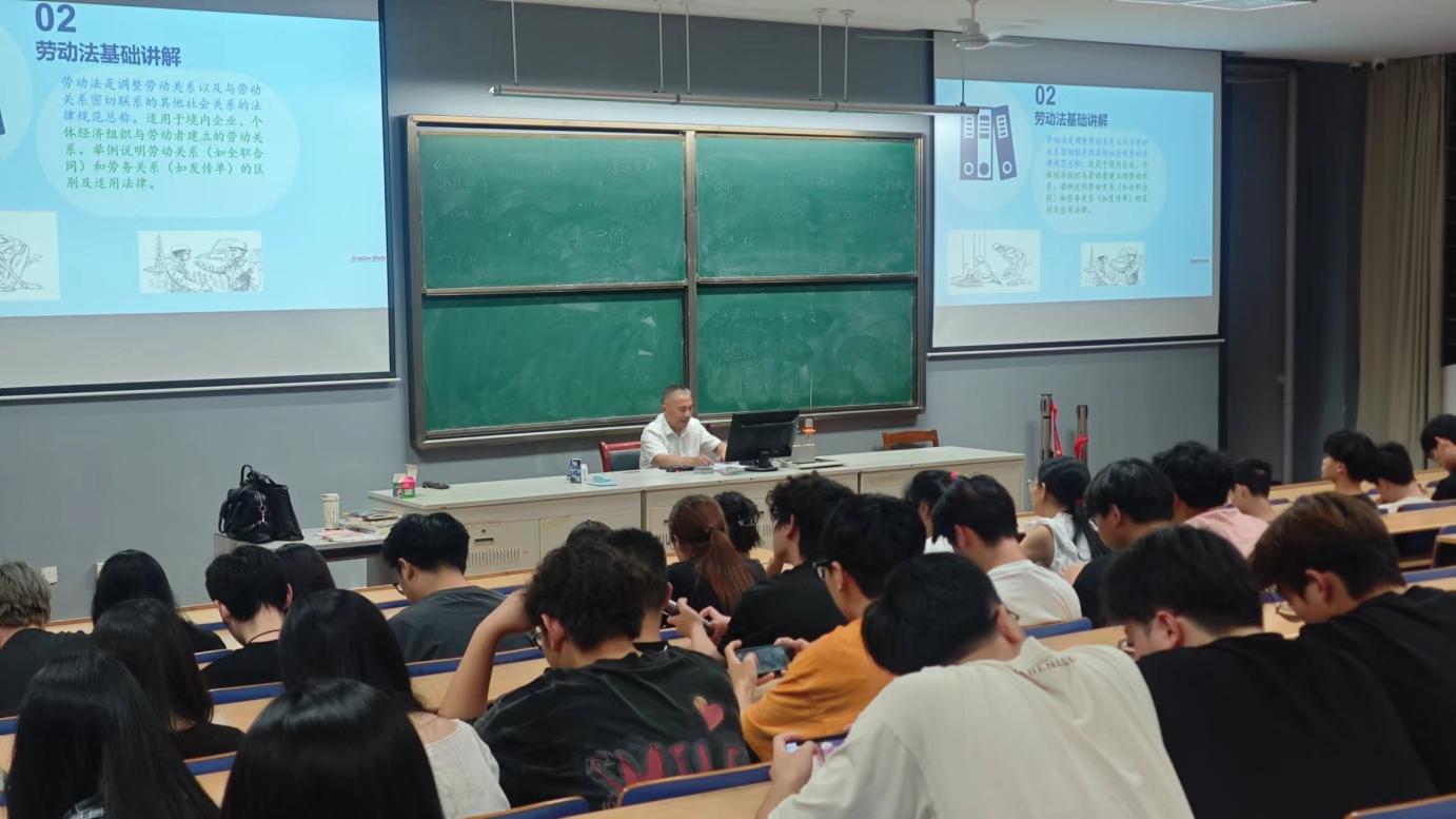 本次讲座特邀资深劳动法领域专家何华庭律师担任主讲。何律师凭借深厚的法律功底和丰富的实务经验,聚焦毕业生在求职签约、入职适应阶段最易遭遇的法律盲区与痛点,带来了一场深入浅出、极具实用价值的法律知识盛宴。何律师首先讲解了我国劳动法的基本框架、立法宗旨及核心原则,为理解后续内容奠定坚实基础;剖析了老员工在就业过程中享有的主要法定权益;深入解读了劳动合同的的签订、履行、解除与终止等全流程关键环节,揭示了合同中的“陷阱”与应对策略;最后系统介绍了劳动争议的常见类型、法定解决途径(协商、调解、仲裁、诉讼)及操作流程,结合案例指导员工如何理性、合法地维护自身权益。