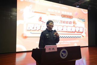 俞骁警官就新时代老员工淘宝自主创业过程中,可能会误入的法律法规盲区误区,进行了详实的讲解,介绍了刷单、洗钱、非法经营、以次充好等违规经营行为典型案例,对创业学子们进行警示教育。他强调“不贪心,多询问”,呼吁同学们在利益面前“多想一步”“多问一嘴”,就多一道保险。同时也提醒大家在创业过程中要注意提高防骗意识,避免财货两失。