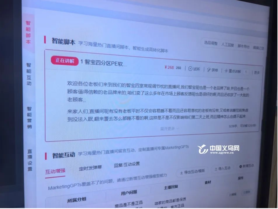 "这个数字人就是以我的形象‘克隆’的,只需10分钟录制,再经过模拟训练就能上岗,24小时不间断直播,同时支持多种语言!"该校直播电商专业员工童佳红向记者演示道,系统能完整捕捉真人主播的语音特征、微表情和肢体动作,生成高度仿真的数字人形象,配合智能脚本,AI主播就能自动完成商品讲解、促销话术,从直播“小白”到“专业主播”,真正实现了AI主播“零门槛”、10分钟快速上岗。