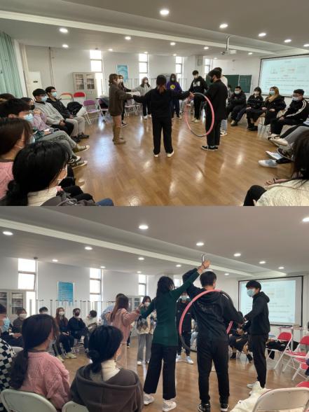 随后,进行了“一圈到底”活动,在活动中同学们手脚并用、互帮互助。每个人都为了能够以最快的速度完成任务而努力,帮助大家进一步认识到集体协助的重要性。提高团队合作意识。