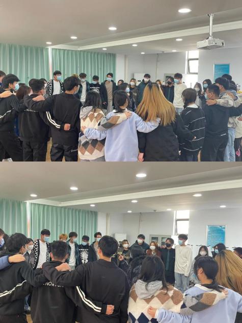 最后一个小游戏是温馨甜蜜的“美好回忆”活动,在舒缓音乐的感染下,同学们肩并着肩跟随音乐左右摇摆、放松身心,团队的温暖让平日的烦恼在此刻烟消云散。
