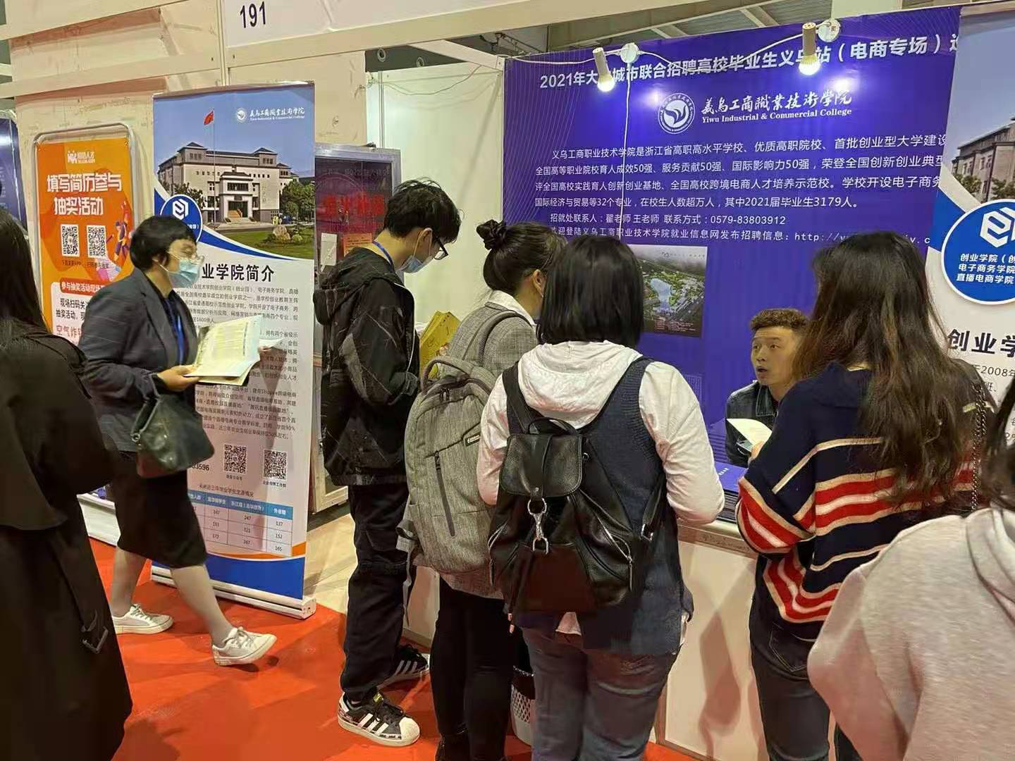 4月11日,2021年大中城市联合招聘高校毕业生义乌站(电商专场)巡回招聘会在义乌国际博览中心D2馆拉开帷幕,公司100余名员工参与招聘会,同时在招聘会上设展为企业提供就业洽谈服务。